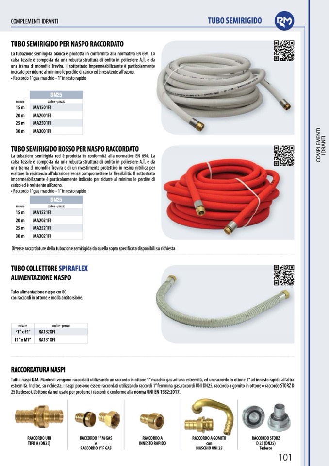 estremità. Inoltre, su richiesta, i naspi possono essere raccordati utilizzando raccordi 1” femmina gas, raccordi UNI DN25, raccordo a gomito in ottone o raccordo STORZ D