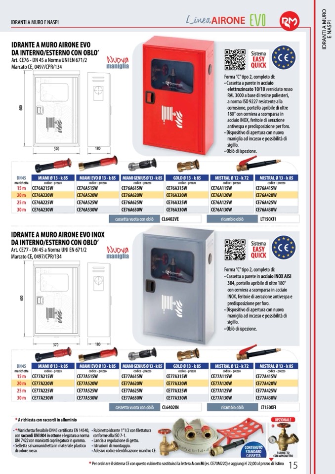 * Per ordinare il sistema CE con questo rubinetto sostituisci la lettera A con M (es. CE70M220) e aggiungi € 22,00 al prezzo di listino