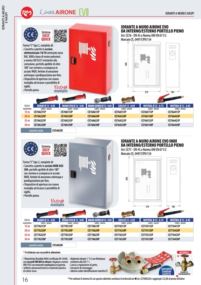 * A richiesta con raccordi in alluminio