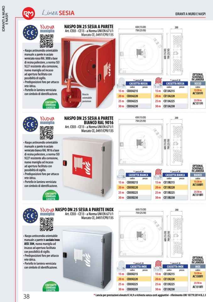* Lancia per prestazioni elevate K 34,9 a richiesta senza costi aggiuntivi - riferimento UNI 10779:2014 B.2.3