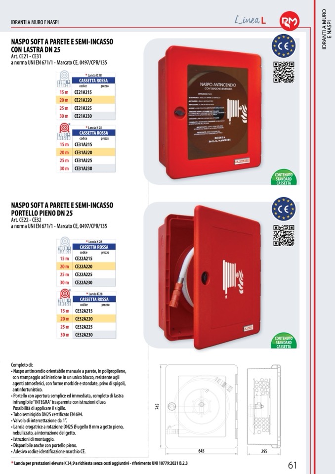 * Lancia per prestazioni elevate K 34,9 a richiesta senza costi aggiuntivi - riferimento UNI 10779:2021 B.2.3