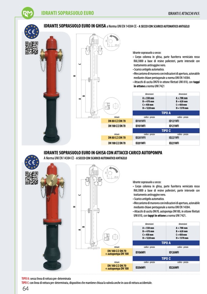 TIPO C: con linea di rottura pre-determinata, dispositivo che mantiene chiusa la valvola anche in caso di rottura accidentale.