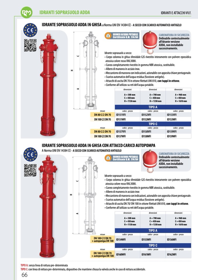 TIPO C: con linea di rottura pre-determinata, dispositivo che mantiene chiusa la valvola anche in caso di rottura accidentale.