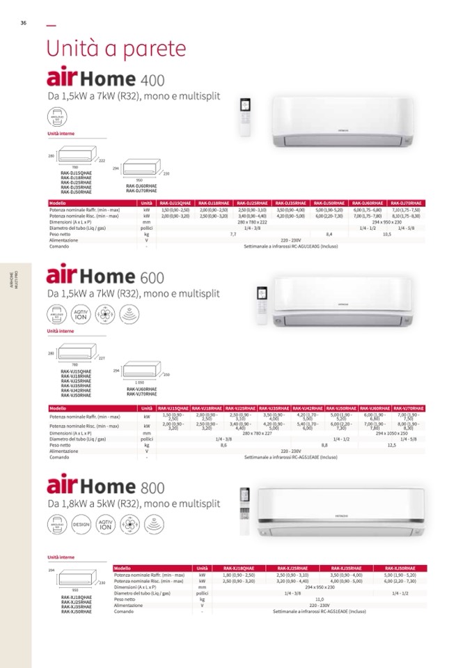 Unità RAK-VJ15QHAE RAK-VJ18RHAE RAK-VJ25RHAE RAK-VJ35RHAE RAK-VJ42RHAE RAK-VJ50RHAE RAK-VJ60RHAE RAK-VJ70RHAE