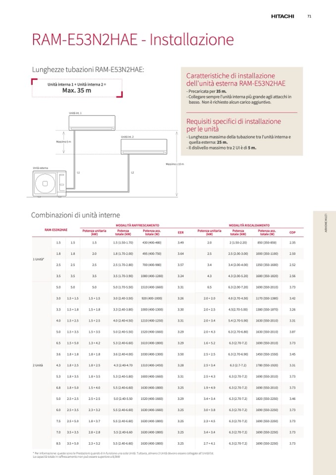 * Per informazione: queste sono le Prestazioni quando è in funzione una sola Unità. Tuttavia, almeno 2 Unità devono essere collegate all'Unità Est.