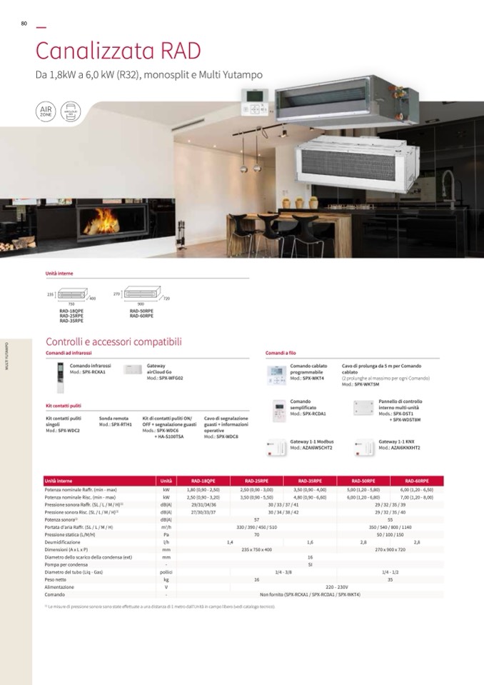 Le misure di pressione sonora sono state effettuate a una distanza di 1 metro dall'Unità in campo libero (vedi catalogo tecnico).