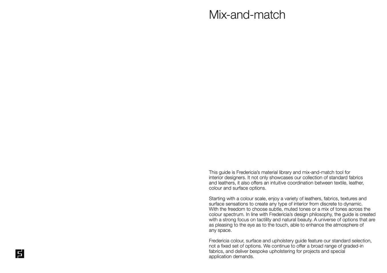 Fredericia colour, surface and upholstery guide feature our standard selection,