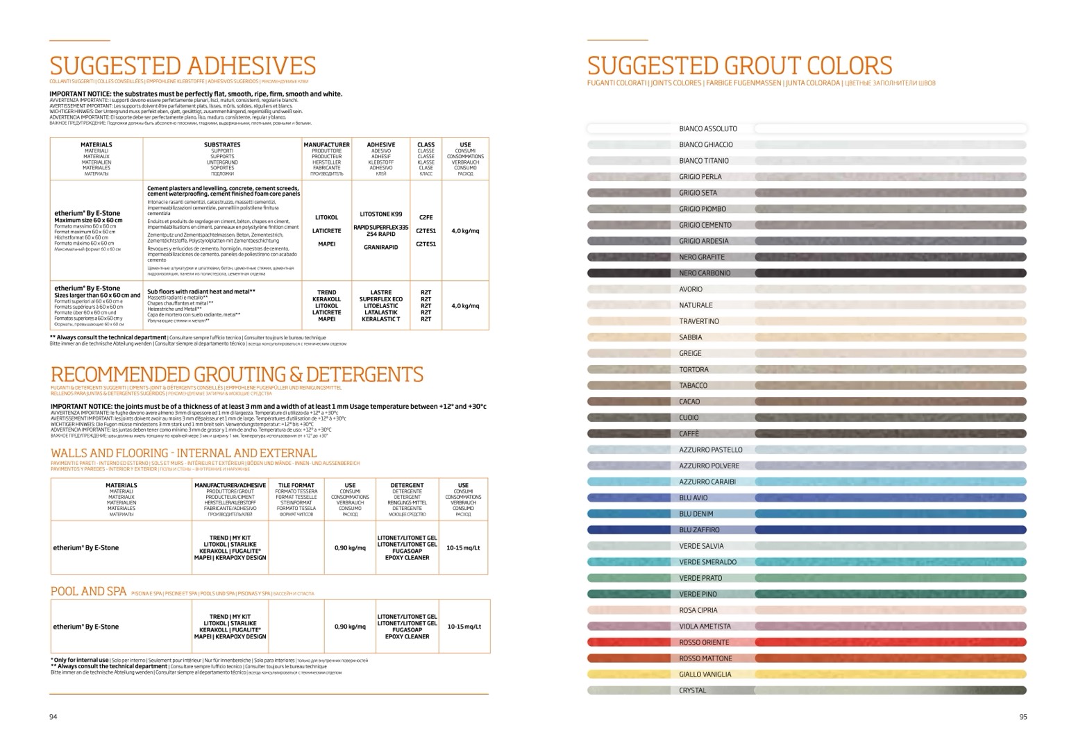 FUGANTI & DETERGENTI SUGGERITI | CIMENTS-JOINT & DÉTERGENTS CONSEILLÉS | EMPFOHLENE FUGENFÜLLER UND REINIGUNGSMITTEL
