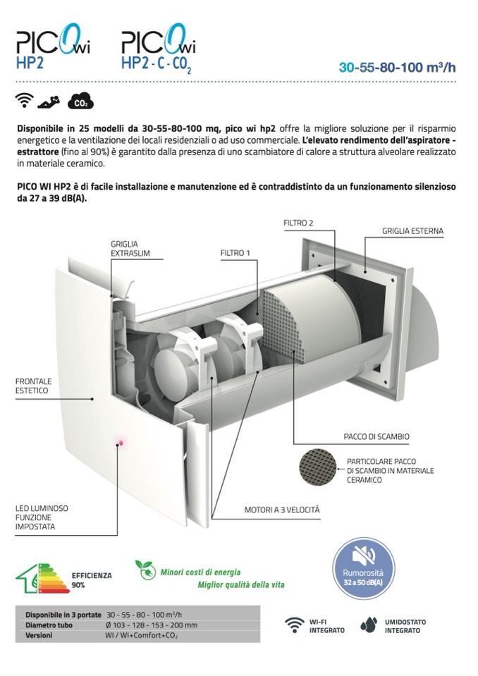 PICO WI HP2 è di facile installazione e manutenzione ed è contraddistinto da un funzionamento silenzioso