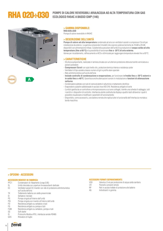 Pompa di calore reversibile in R454C