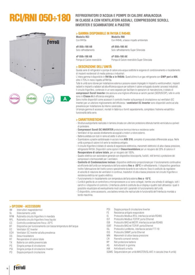 refrigerante R410A. Disponibili come opzioni il Desurriscaldatore per un recupero del 20% di calore e il