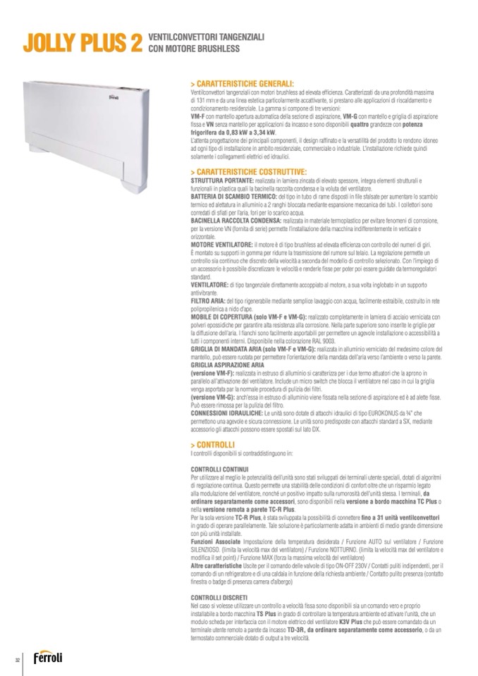 Ventilconvettori tangenziali con motori brushless ad elevata efficienza. Caratterizzati da una profondit