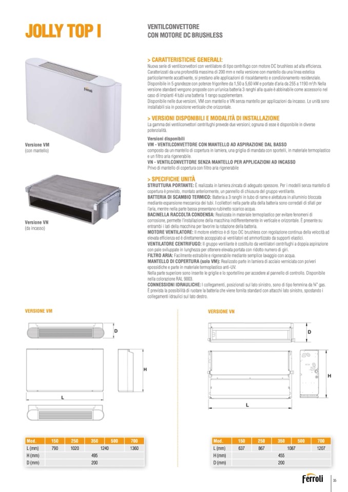 La gamma dei ventilconvettori centrifughi prevede due versioni; ognuna di esse è disponibile in diverse