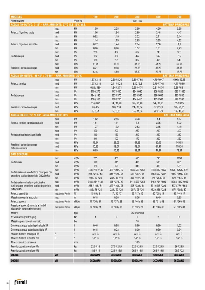 ACQUA (IN-OUT)°C: 45-40° / 70-60° - ARIA AMBIENTE: 20°C