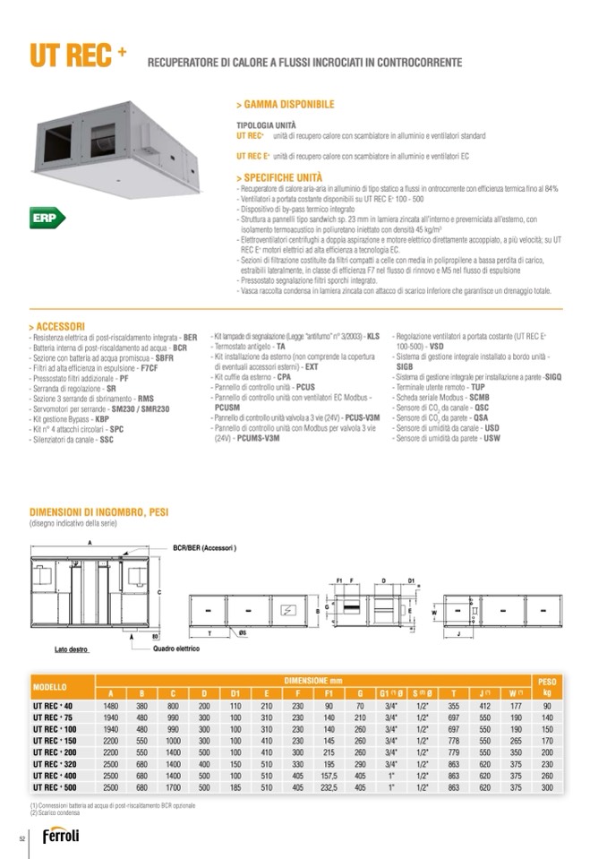 - Ventilatori a portata costante disponibili su UT REC E