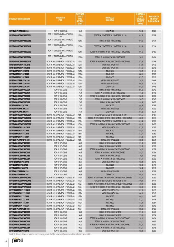 La tabella delle combinazioni potrebbe non essere aggiornata. Veri