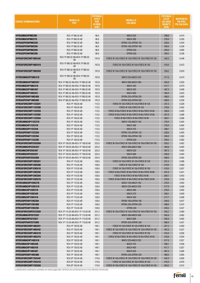La tabella delle combinazioni potrebbe non essere aggiornata. Verifica la tua combinazione con il tuo referente commerciale.