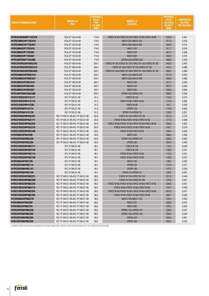 fica la tua combinazione con il tuo referente commerciale.