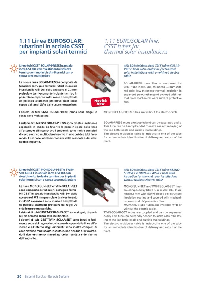Linee tubi CSST SOLAR-PRESS in acciaio