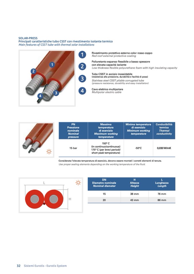 Main features of CSST tube with thermal solar installations