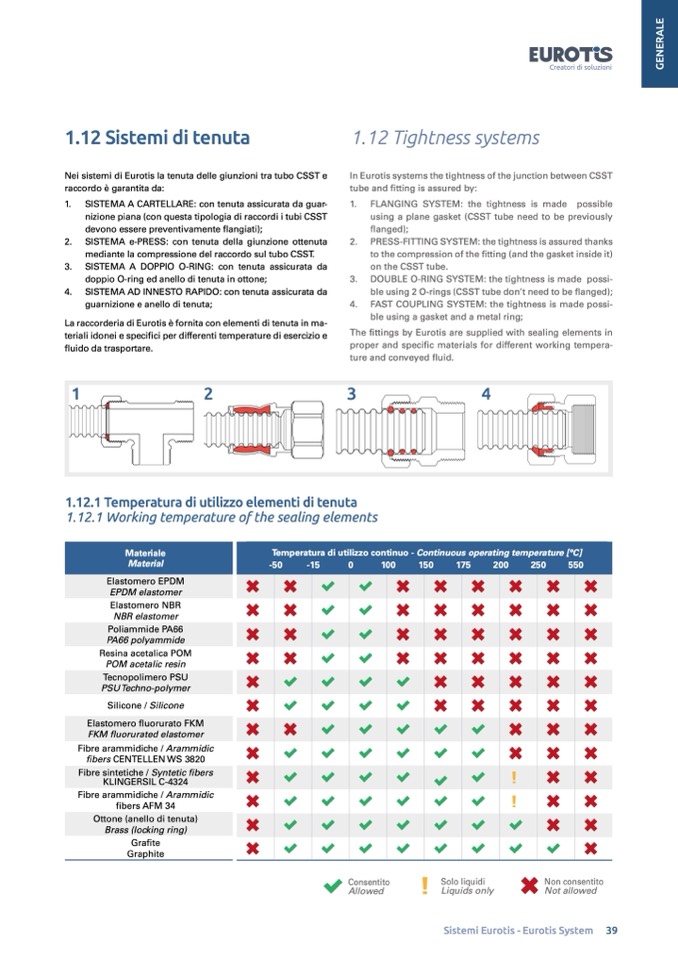 La raccorderia di Eurotis è fornita con elementi di tenuta in ma-