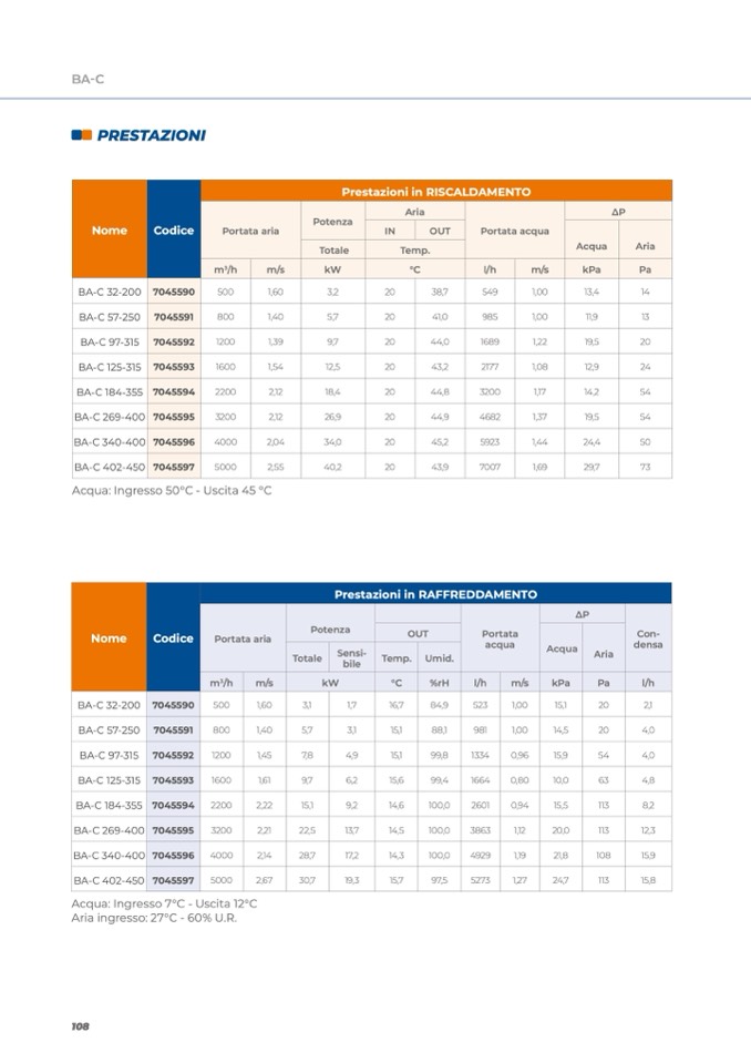 Acqua: Ingresso 7°C - Uscita 12°C