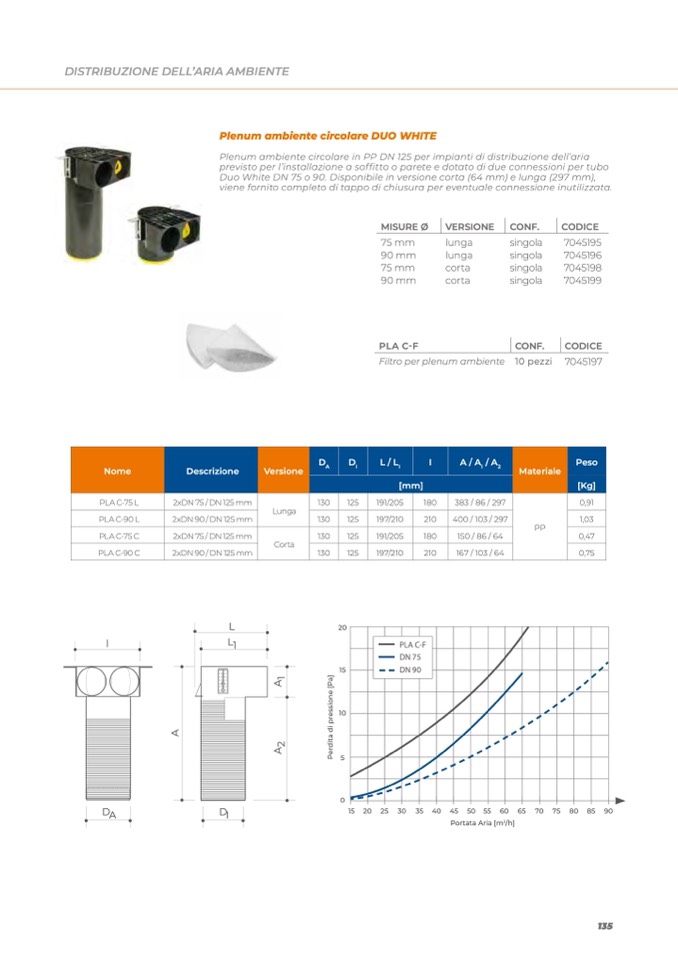 Duo White DN 75 o 90. Disponibile in versione corta (64 mm) e lunga (297 mm),