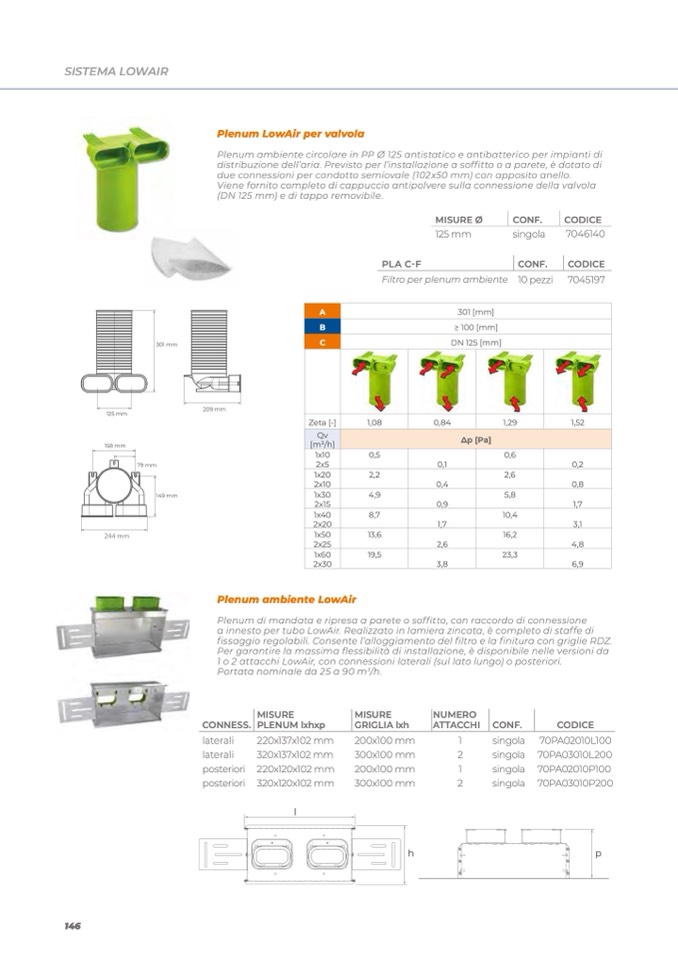 1 o 2 attacchi LowAir, con connessioni laterali (sul lato lungo) o posteriori.