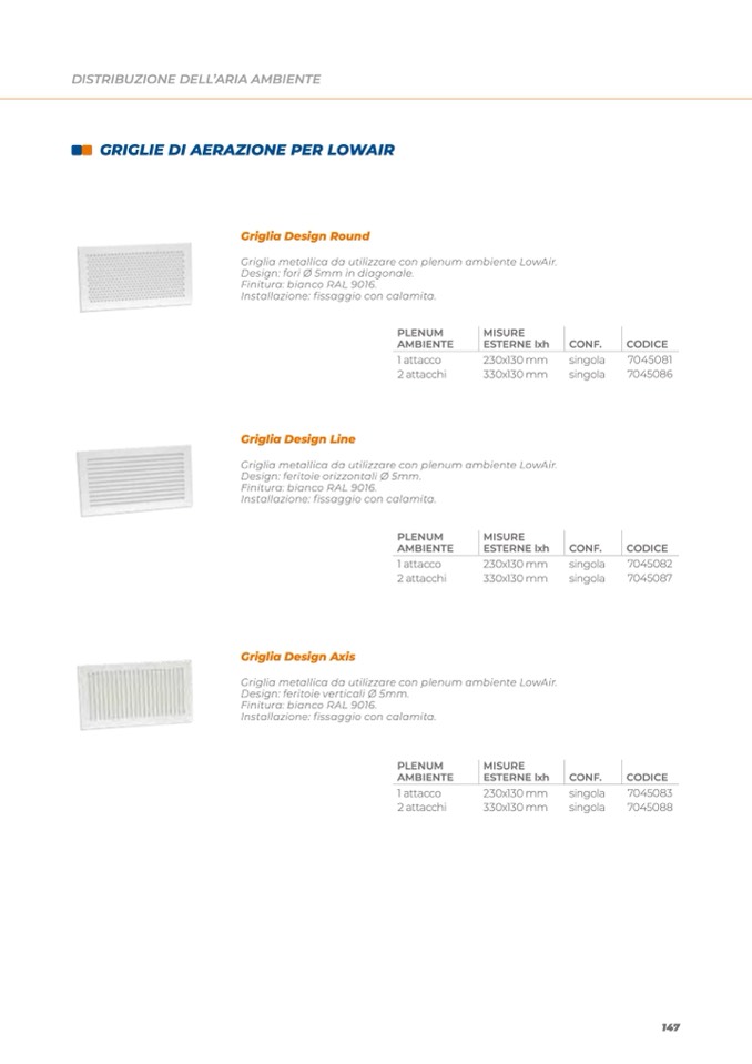 Griglia metallica da utilizzare con plenum ambiente LowAir.