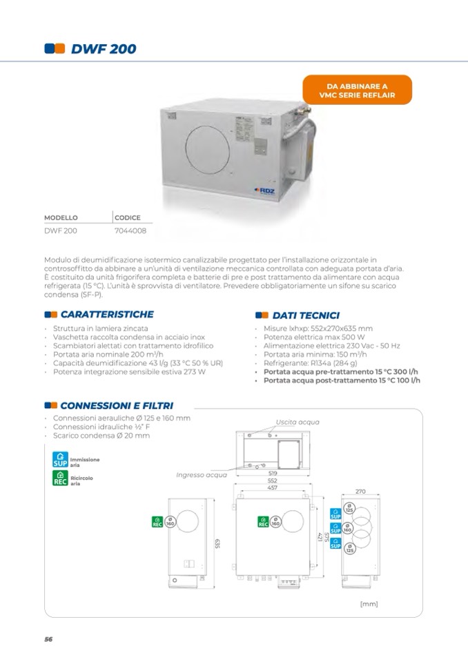 refrigerata (15 °C). L’unità è sprovvista di ventilatore. Prevedere obbligatoriamente un sifone su scarico