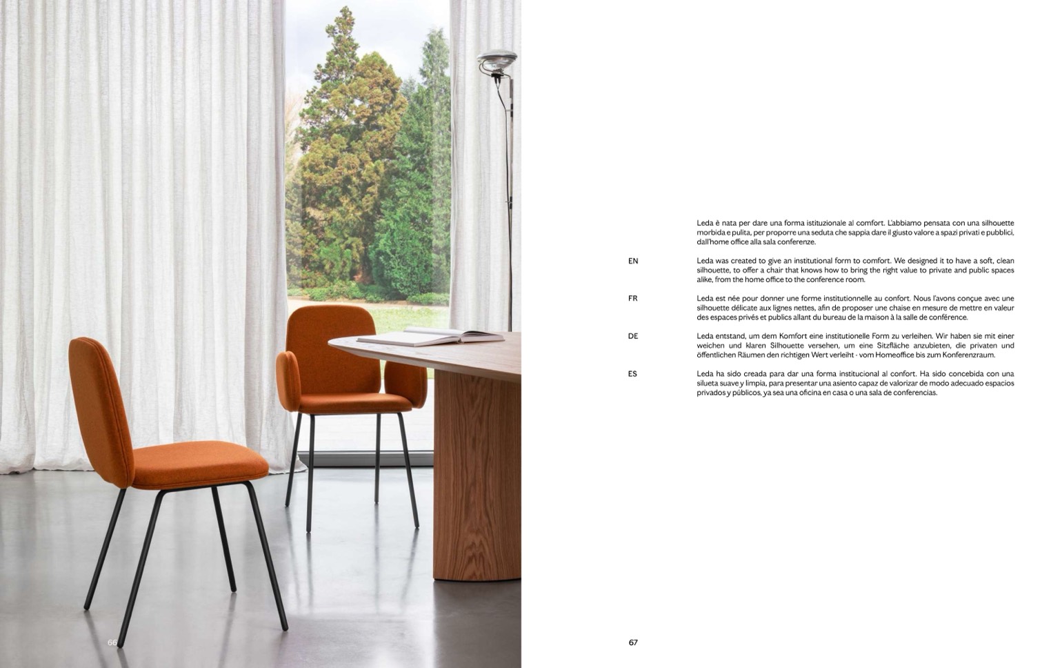 Leda è nata per dare una forma istituzionale al comfort. L’abbiamo pensata con una silhouette
