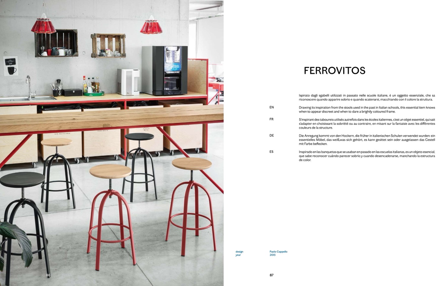 Ispirato dagli sgabelli utilizzati in passato nelle scuole italiane, è un oggetto essenziale, che sa