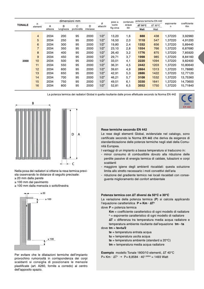 La potenza termica dei radiatori Global è quella risultante dalle prove effettuate secondo la Norma EN 442