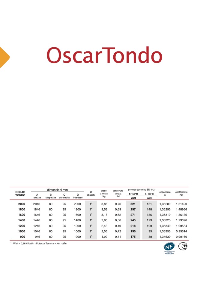 * 1 Watt = 0,863 Kcal/h - Potenza Termica = Km · ∆Tn