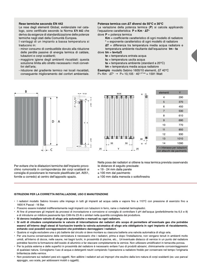 • I radiatori modello Sebino trovano utile impiego in tutti gli impianti ad acqua calda e vapore