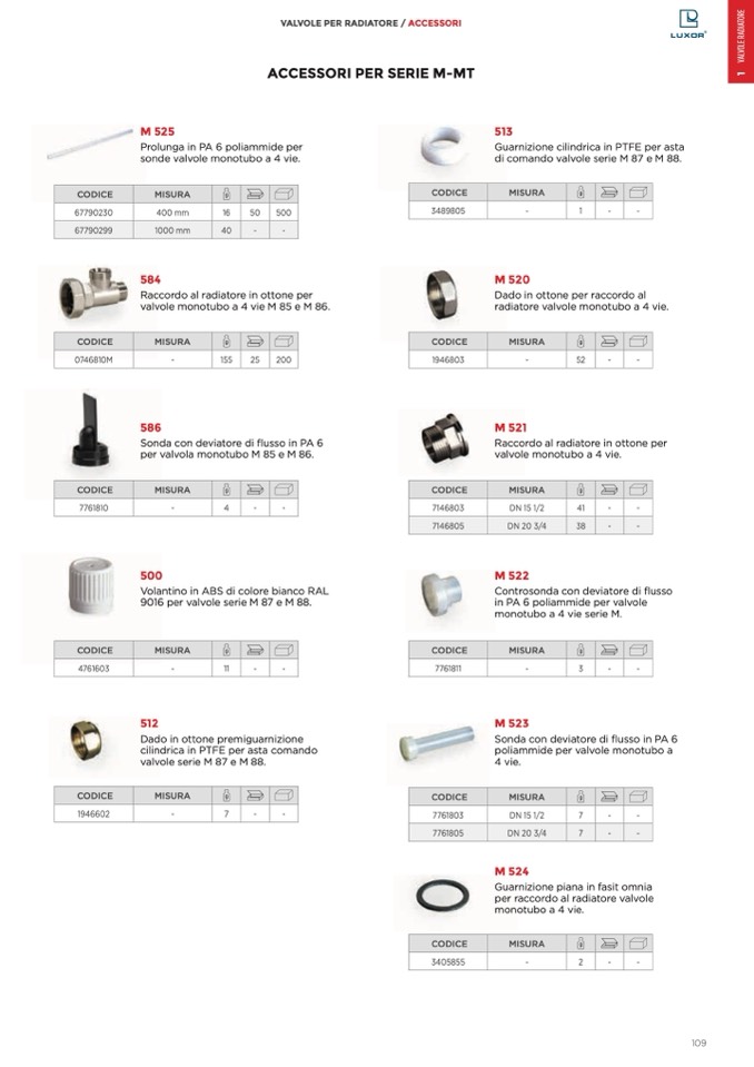 valvole serie M 87 e M 88.
