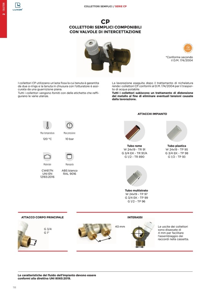 rende i collettori CP conformi al D.M. 174/2004 per il traspor-