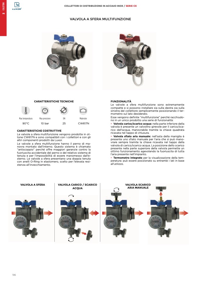 sterno. Le valvole a sfera presentano una doppia tenuta