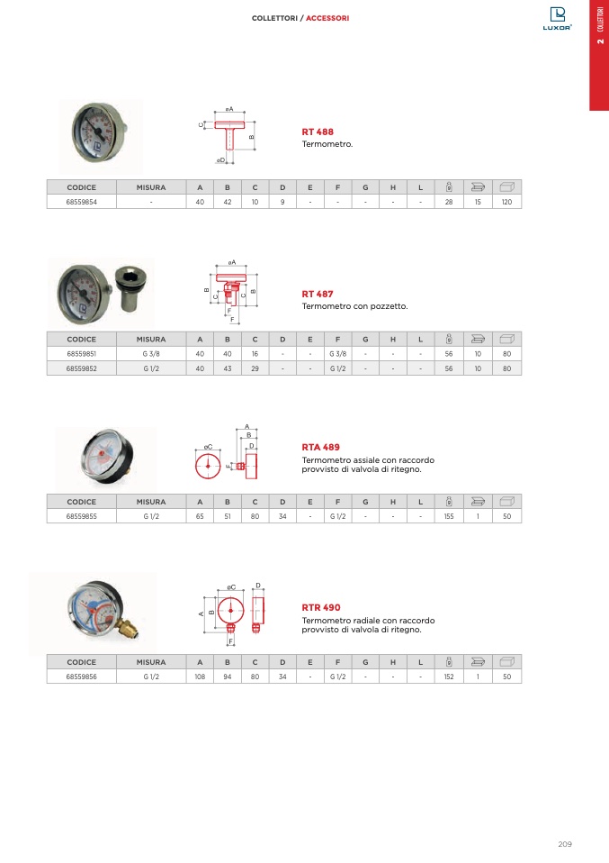 Termometro assiale con raccordo