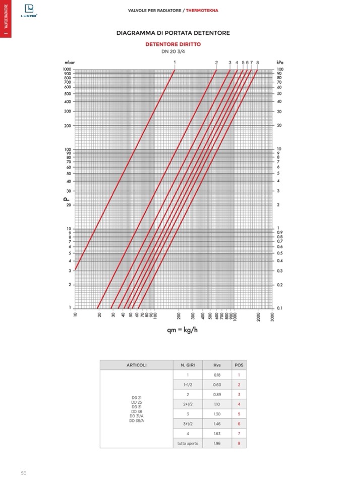 DIAGRAMMA DI PORTATA DETENTORE