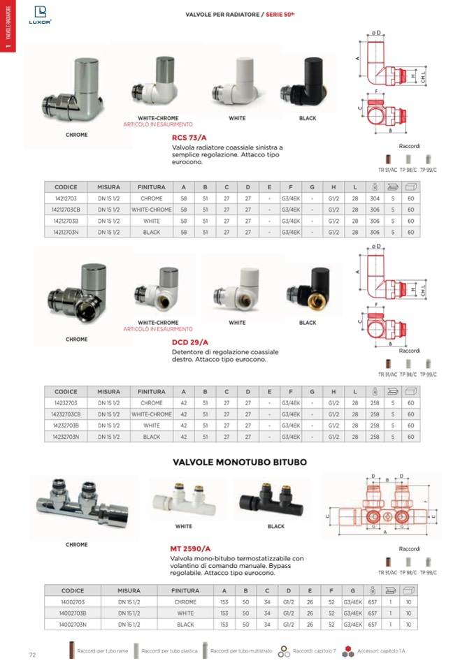 VALVOLE PER RADIATORE / SERIE 50ͭh