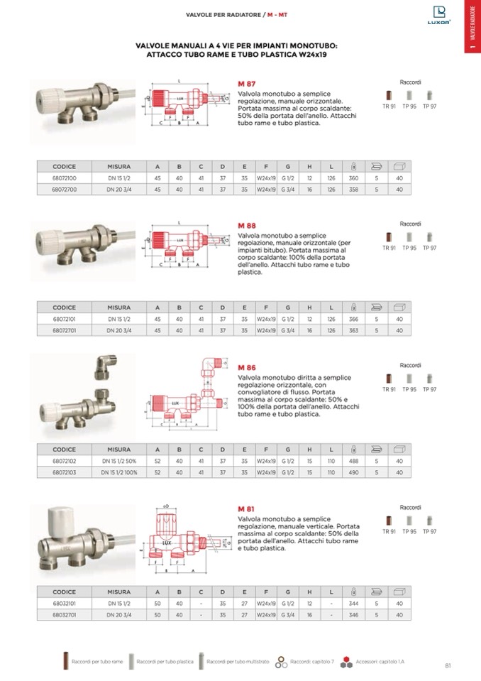 VALVOLE MANUALI A 4 VIE PER IMPIANTI MONOTUBO: