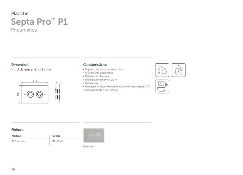 • Placca per orinatoio abbinabile disponibile (vedere pagina 57)