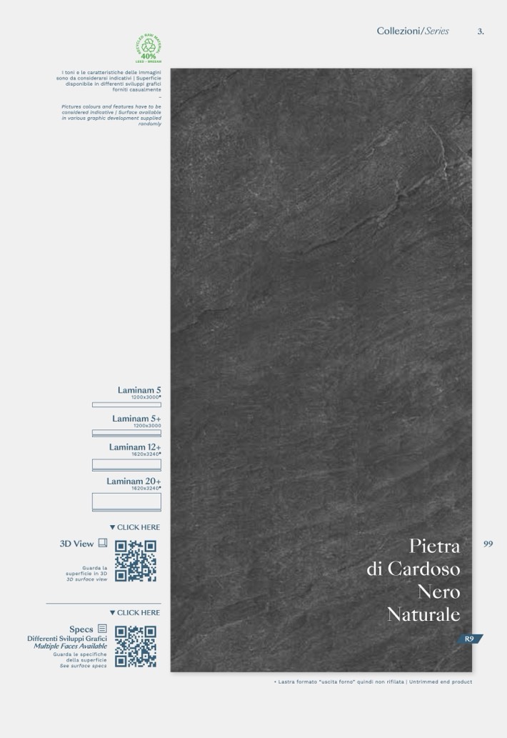• Lastra formato “uscita forno” quindi non rifilata | Untrimmed end product