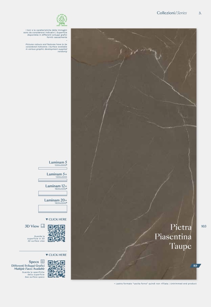 • Lastra formato “uscita forno” quindi non rifilata | Untrimmed end product
