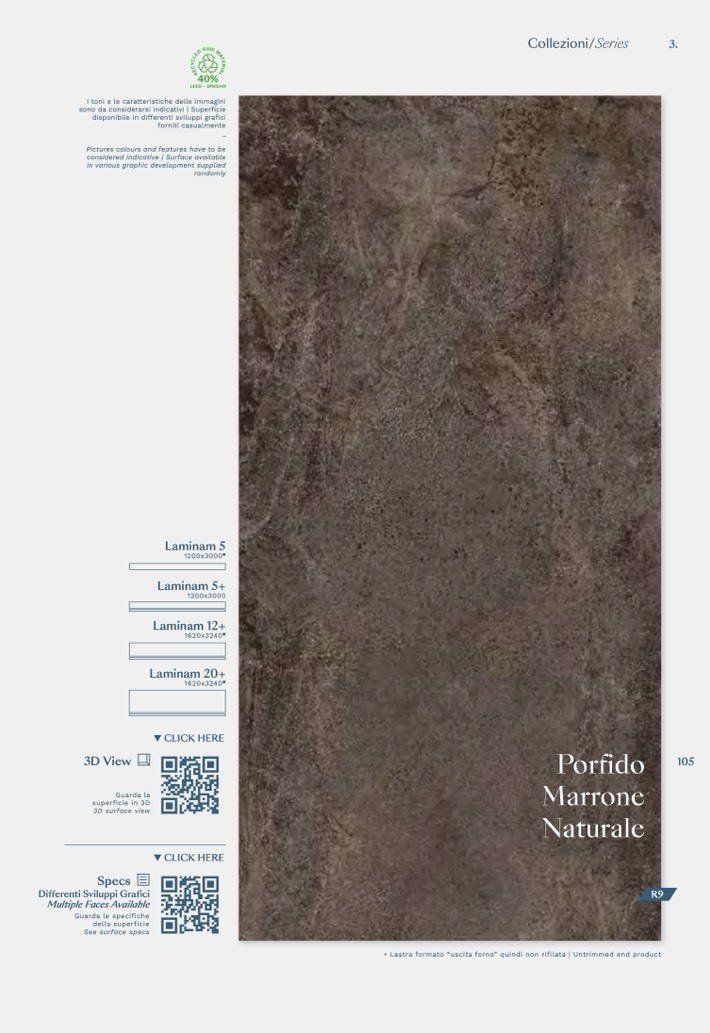 • Lastra formato “uscita forno” quindi non rifilata | Untrimmed end product