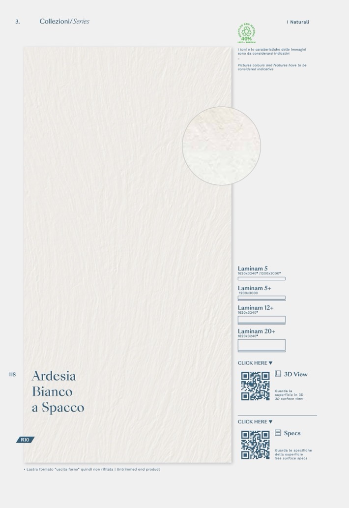 • Lastra formato “uscita forno” quindi non rifilata | Untrimmed end product