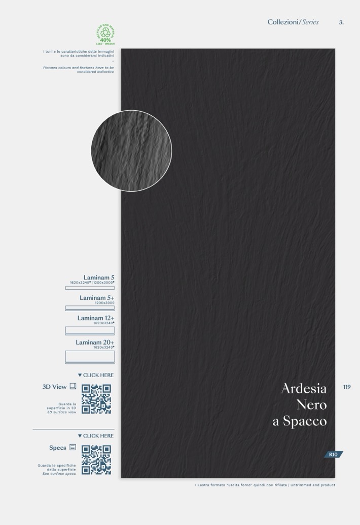 • Lastra formato “uscita forno” quindi non rifilata | Untrimmed end product