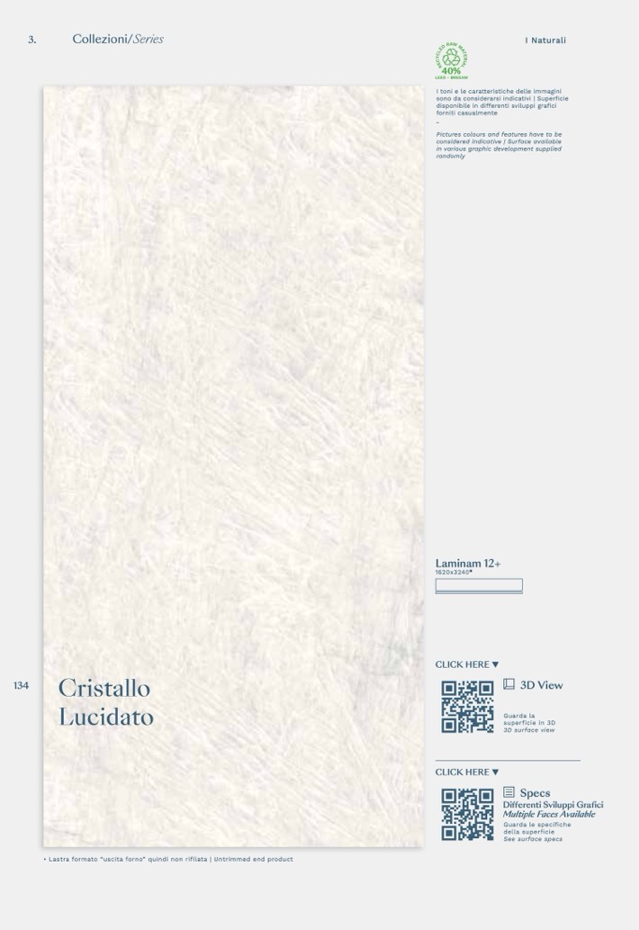 • Lastra formato “uscita forno” quindi non rifilata | Untrimmed end product