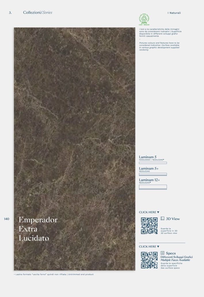 • Lastra formato “uscita forno” quindi non rifilata | Untrimmed end product